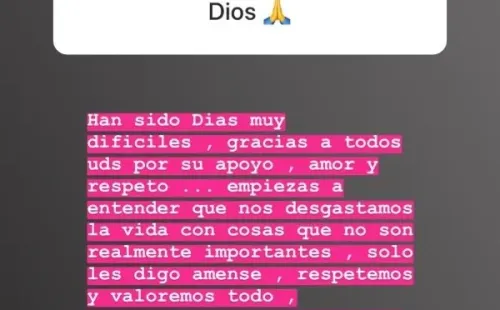 Ante esto la exesposa de James Rodríguez respondió: “Han sido días difíciles, gracias a uds por el apoyo, amor y respeto”.