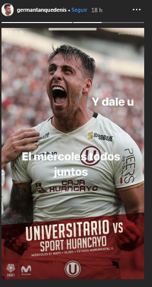 “Y Dale U, el miércoles todos juntos”, fue el mensaje que el punta extranjero dejó en su instagram.