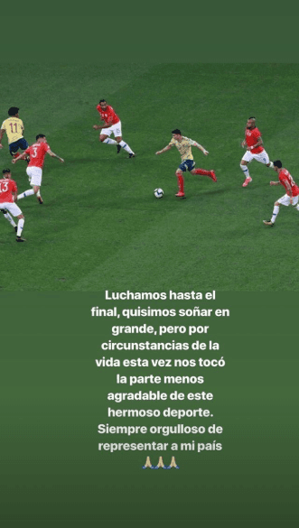 “Luchamos hasta el final, quisimos soñar en grande, pero por circunstancias de la via esta vez nos tocó la parte menos agradable de este hermoso deporte. Siempre orgulloso de representar a mi país“, escribió.