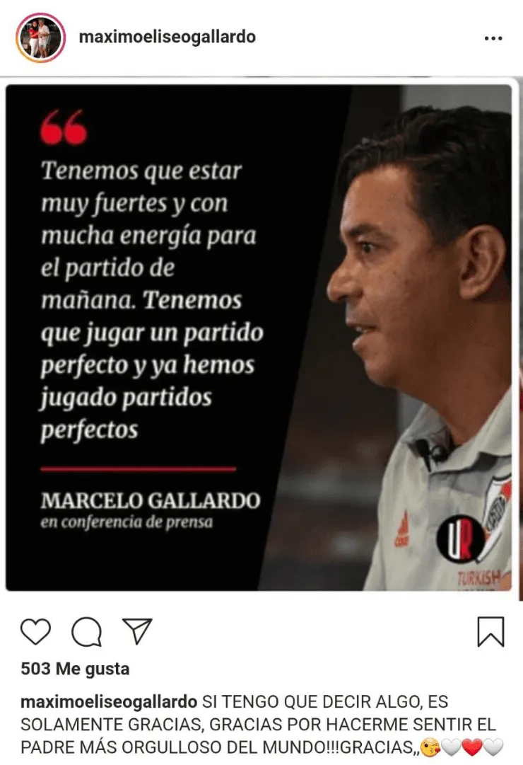 Después del encuentro, Máximo Gallardo, su padre, le dedicó unas palabras a tráves de su cuenta de Instagram.