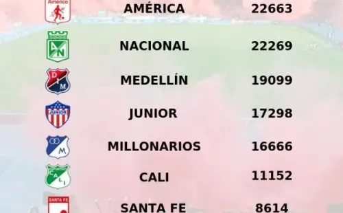Sin embargo, esta es una situación completamente anormal en el fútbol colombiano. Según la tabla de promedio de asistencias, durante este semestre en la Liga, América lideró la tabla que superó los 20 mil hinchas por partido, mientras que el Cali no aparecía en los primeros 5lugares.
