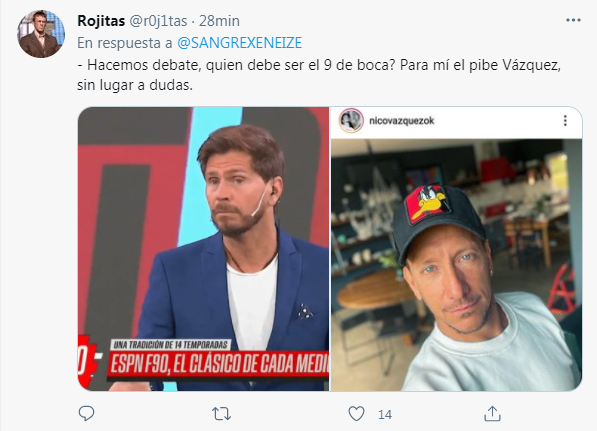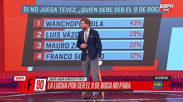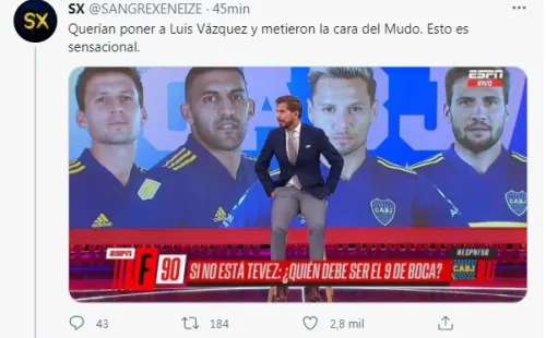 De eso querían hablar este jueves enESPNF90, aunque sucedió un blooper inesperado: en la imagen del programa confundieron la cara del pibe de Boca con la de FrancoEl MudoVázquez, futbolista del Sevilla de España.