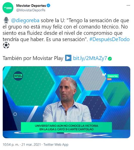 Para Diego Rebagliati, hay un problema enre jugadores y DT. Según su opinión, no información, hay respaldo del plantel al entrenador que perdió la final contra Sporting Cristal el año pasado e hizo un capricho cuando se fue expulsado.
