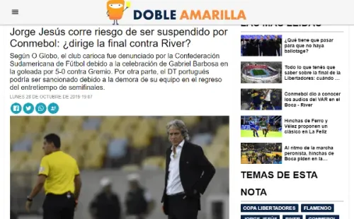 En Rio de Janeiro están esperando que se confirme la posible sanción a Jorge Jesús y, en ese caso, no estaría en la final en Santiago.