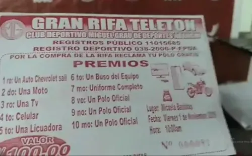 Y es queTedber Gonzáles, presidente del conjunto mencionado, realizó la venta de rifas para poder viajar en avión a Chiclayo, donde jugará su próximo partido.Estastiene un valor de 100soles y sortea los siguientes premios: