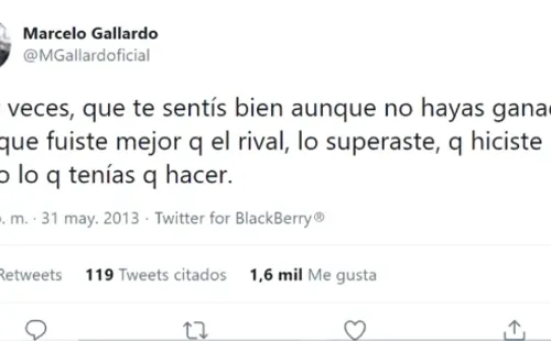 “Hay veces, que te sentís bien aunque no hayas ganado, porque fuiste mejor que el rival, lo superaste, que hiciste todo lo que tenías q hacer”, escribió el Muñeco en 2013 en su cuenta oficial, que muy poco usa.