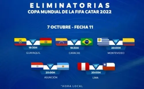 Los próximos 7, 10 y 14 del décimo mes del 2021, en Sudamérica, se disputarán las fechas 11, 5 y 12, en la Eliminatoria mundialista camino a la cita orbital del año que viene. Serán partidos reñidos que como de costumbre dejarán movimientos en la apretada tabla de posiciones.