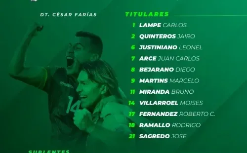 Carlos Lampe; Diego Bejarano, Jairo Quinteros, José Sagredo; RodrigoRamallo, Leonel Justiniano, Moises Villarroel,Fernandez, Juan Carlos Arce;Marcelo Moreno Martins y Bruno Miranda
