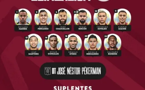 Wuilker Fariñez; RonaldHernández, Nahuel Ferraresi, Jhon Chancellor, ÓscarGonzález; Tomás Rincón, José Martínez; Yeferson Soteldo, Darwin Machís, Rómulo Otero; Salomón Rondón