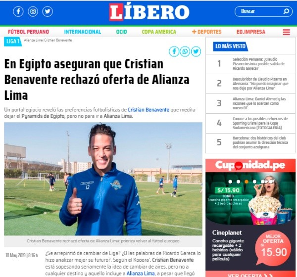 El buen presente de Cristian Benavente no solo llamó la atención del Equipo del Pueblo sino además cautiva la atención de clubes de Europa que quieren hacerse de sus servicios. En últimas horas desde Egipto aseguraron que el destino del peruano no será las filas de Alianza Lima.