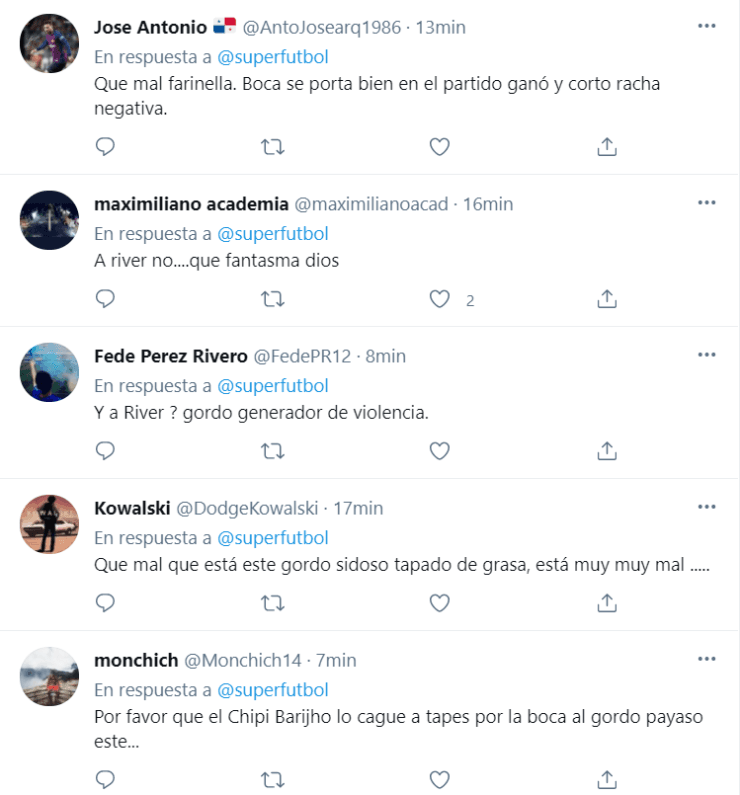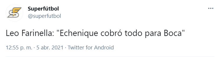 Primero señaló que“Echenique cobró todo para Boca”, haciendo referencia al duelo del sábado, para luego ir más lejos diciendo que “siempre los árbitros” están más inclinados para el lado azul y oro. La cuenta oficial del programa levantó las declaraciones en Twitter y explotaron las respuestas…