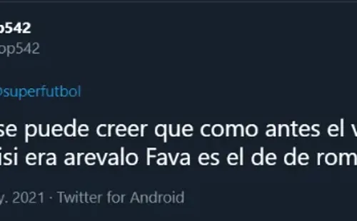 Acto seguido, la cuenta de Twitter del mencionado programa citó y publicó las declaraciones de Fava, desatando, de manera inmediata, una catarata de comentarios plagados de risas por parte de los usuarios de la mencionada red social. Y sí, parece ser que al periodista de ‘Superfútbol’ se le fue un poco la mano con su análisis…