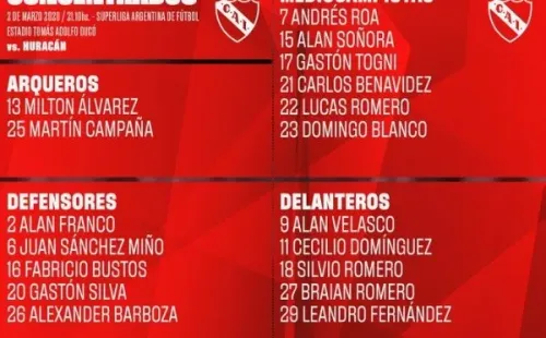 +Estos son los concentrados de Independiente para hoy: