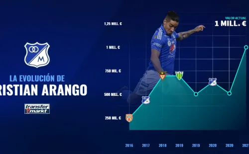Valor que se mantuvo tras su paso al CD Tondela. En 2019, Arango regresó a Millonarios pero con una baja significativa en su valor, pues regresó a costar 500 mil euros. Posteriormente tuvo dos un alza y una baja hasta este 2021. Pues en lo que va del año, su valor ya alcanzó al millón de euros; el mejor valor de su carrera.