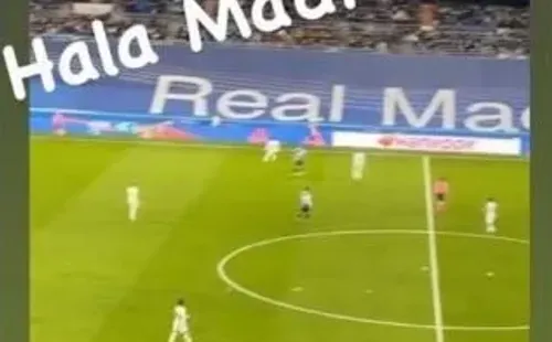 Viendo al cuadro Merengue, el sábado 19 de febrero, y en la victoria 3-0 sobre Alavés, compartió una seguidilla de imágenes. La primera, el bus del club llegando al coloso madrileño. La segunda, una de los trofeos de la Champions League y la tercera una de la cancha con los dos equipos en el césped; claro está que las dos primeras fueron compartidas por su padre.