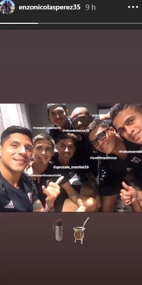 Fue Enzo Pérez quien compartió una foto con varios compañeros, tomando mate, relajados. Pero Quintero se robó todas las miradas.