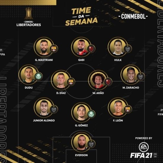 Atlético Mineiro, equipo que venció gracias a un global de 4-0 a River Plate, fue el elenco que más tuvo hombres en el once ideal de la semana. En todas las posiciones tiene jugadores; arquero, defensa, mediocampista y delantero, metió el Galo, como los que más brillaron.