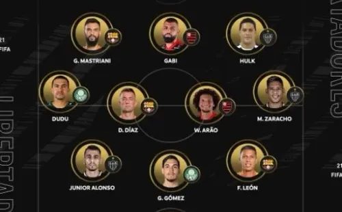 Mediocampistas: Matías Zaracho (Atl. Mineiro), William Arao (Flamengo), Damián Díaz (Barcelona) y Dudu (Palmeiras).