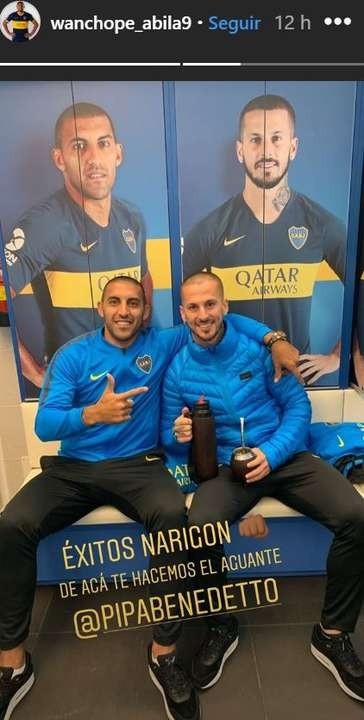 “Éxitos, Narigón. De acá te hacemos el aguante”, exteriorizó ‘Wanchope’, acompañando la frase con una foto en la que se los puede ver juntos en el vestuario del elenco ‘Xeneize’.
