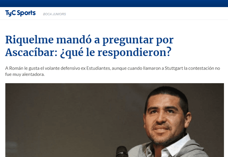 El portal en cuestión indicó que Román mandó a preguntar porSantiago Ascacibar, ex jugador de Estudiantes de La Plata que actualmente defiende la camiseta delStuttgart.
