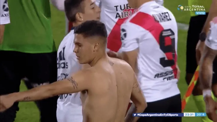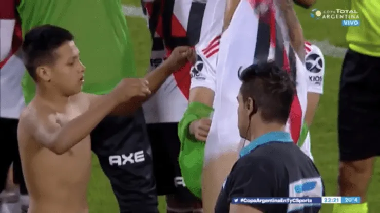 Apenas se pitó el final del encuentro,un hincha de Riversaltó al campo de juego y fue directo a Quintero.