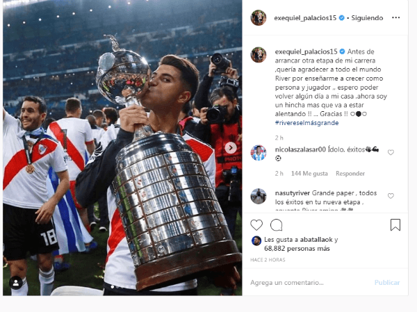 “Antes de arrancar otra etapa de mi carrera ,quería agradecer a todo el mundo River por enseñarme a crecer como persona y jugador ,, espero poder volver algún día a mi casa ,ahora soy un hincha mas que va a estar alentando !! … Gracias !!”, escribió el crack.