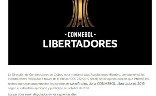 En la previa de los encuentros de vuelta por los cuartos de final, laConmebolanunció que ya está confirmado cómo se jugarán las semifinales de laCopa Libertadores.
