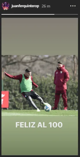 Si bien la cuenta oficial subió varias fotos de la sesión llevada a cabo este miércoles por la mañana, Juanfer decidió utilizar una en particular en la que aparece junto a Marcelo Gallardo.