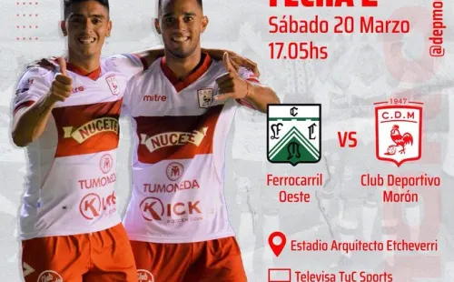 Por la segunda fecha de laPrimera Nacionaly este sábado20de marzo,Ferro Carril Oesterecibe al conjunto del Deportivo Morónen un encuentro que será vibrante para los fanáticos de ambos planteles. El juego será transmitidoEN VIVO Y EN DIRECTOa través de la pantalla de TyC Sports yTyC Sports Play.