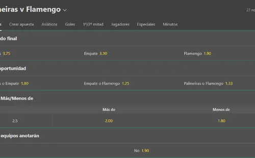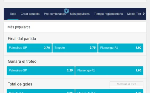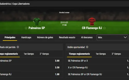 Flamengoes amplio favorito a levantar la Copa Libertadores para las casas de apuestas. Por lo tanto,una victoria delMengãoen la final tendrá una recompensa bajapara los que decidan apostar: $1.89 de promedio.