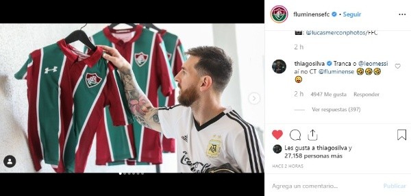 Y Thiago Silva, confeso hincha de este equipo, donde surgió, comentó el posteo re manija mientras concentra con Brasil. ¡Un capo!
