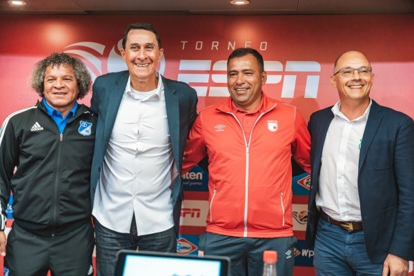 Alberto Gamero, Alexandre Guimaraes, Harold Rivera y Alfredo Arias no solo se sentaron juntos para hablar a los medios. Los técnicos de Millonarios, América, Santa Fe y Cali posaron a las cámaras y en abrazo demostraron que sí se puede vivir el fútbol en paz.