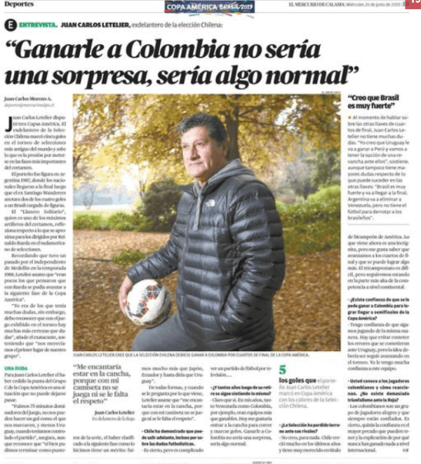 A esas declaraciones se suma lo dicho por Juan Carlos Letelier, exjugador de la Selección de Chile y uno de los máximos goleadores de La Roja, quien, en entrevista con El Mercurio de Calama, dijo:”Ganarle a Colombia no sería una sorpresa, sería algo normal”.