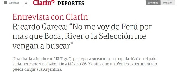 Para Clarín, un medio argentino, señaló lo siguiente: “Por más que me vengan a buscar Boca y River, no me voy de Perú porque estoy con contrato. Lo mismo que la Selección o Vélez. Eso lo torna más difícil”.