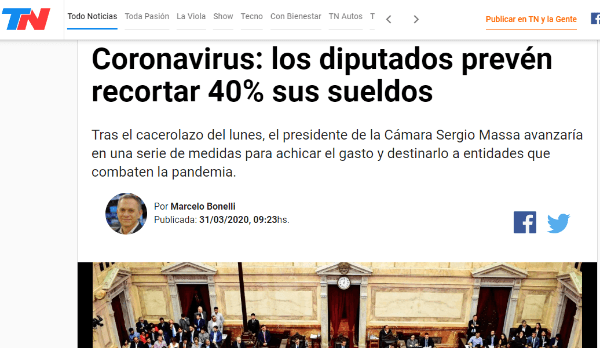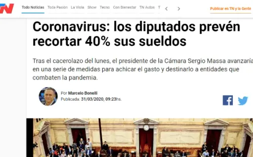 El gobierno nacional tomó nota de esto y decidió ir más allá. Sergio Massa, Presidente de la Cámara de Diputados, analiza hacer un recorte del 40% del sueldo de los legisladores.