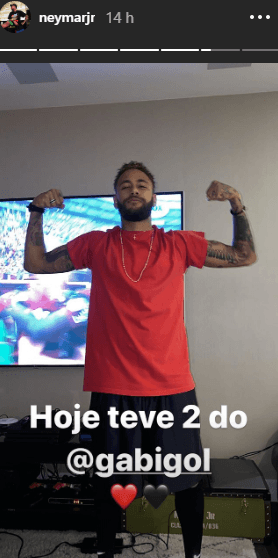 El crack del PSG posó en Modo Hulk, vestido de rojo y negro, pare felicitar a Gabigol por su doblete.