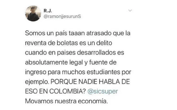 Parece que la defensa de la FCF y los directivos castigados por la SIC por reventa de boletería tiende a una sale base: la reventa de boletería en otros países es legal, ya que se considera un hecho que “moviliza la economía”. Al final, las autoridades hicieron la investigación y penaron a todos los involucrados en el cartel de reventa de boletería de la Selección Colombia en Eliminatorias.