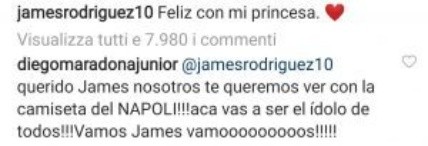 “Querido James, nosotros te queremos ver con la camiseta del Napoli. ¡Acá vas a ser el ídolo de todos! Vamos, James, vamoooooooos”, fue el comentario del primogénito de la leyenda argentina.
