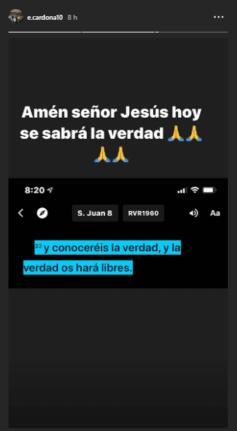 Utilizando como referencia una cita bíblica, el futbolista en cuestión escribió: “Amén señor Jesús hoy se sabrá la verdad”.