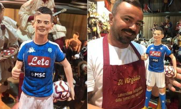 En la Via San Gregorio Armeno, caracterizada por encontrar todo el arte napolitano y grandes esculturas, ya se puede ver al colombiano, sin aún oficializarse su arribo a Nápoles.