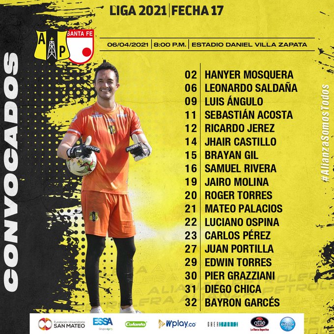 FÚTBOL EN VIVO | EN VIVO ONLINE | FÚTBOL COLOMBIANO | Se juega la fecha 17 de laLiga Betplay de Colombiay este martes 6 de abril,Alianza Petrolerarecibe a su similar deIndependiente Santa Feen un cruce que será vibrante para los fanáticos de ambos planteles. El duelo será transmitidoa través de la pantalla deWin Sports+.