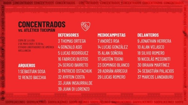Independiente y Atlético Tucumánse enfrentarán el domingo2de mayo. El duelo entre ambas escuadras está pactado a las 12:10 horas (hora de Argentina) y tendrá lugar en el Estadio Libertadores de América.