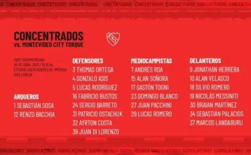 El duelo entre Independiente y MontevideoCity Torque se llevará a cabo HOYmiércoles 28 de abrilen el Estadio Libertadores de América.