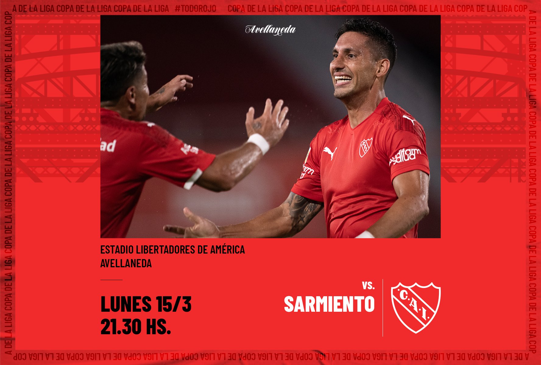 El partido de Independiente vs. Sarmientose realizará HOY lunes 15 de marzoen el Estadio Libertadores de América.