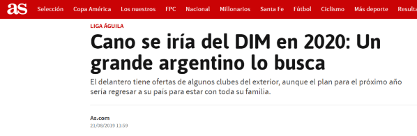 Cano ha dicho en varias ocasiones que se quiere quedar más tiempo en el Medellín, pero esa decisión solo dependerá de la renovación que le proponga el equipo antioqueño ya que su contrato se vence el próximo 31 de diciembre de 2019, y además, tendría ofertas de México, Estados Unidos y Argentina.