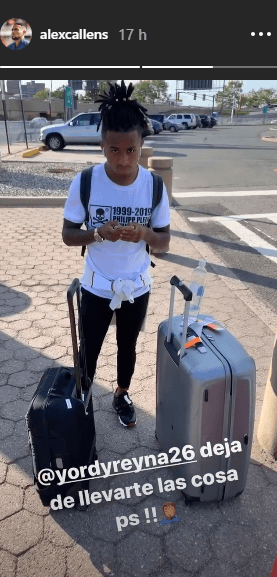 Primero Reyna publicó a su compañía en el avión llamándolo “hermano”. Después, al llegar Alex mostró al delantero con sus maletas, molestestándolo por su abultado equipaje.