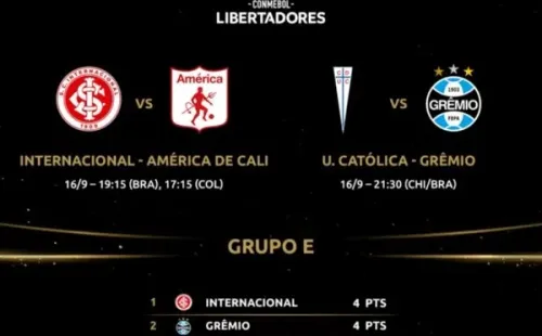 En el grupo, Inter se ubica en lo más alto junto a Gremio con cuatro unidades, mientras que América marcha tercero con tres.