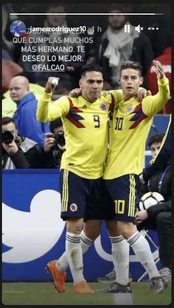 En sus historias de Instagram, el volante cucuteño sacó una foto junto a Falcao y lo felicitó en su día especial: “Feliz cumple Falca. Que cumplas muchos más, hermano. Te deseo lo mejor”.