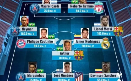 Junto a los colombianos hay grandes figuras como el argentino Lionel Messi cuyo valor es de 150 millones de euros, los brasileros Philippe Coutinho en 90M€, Roberto Firmino por 80M€ y el arquero Alisson Becker en 80M€.