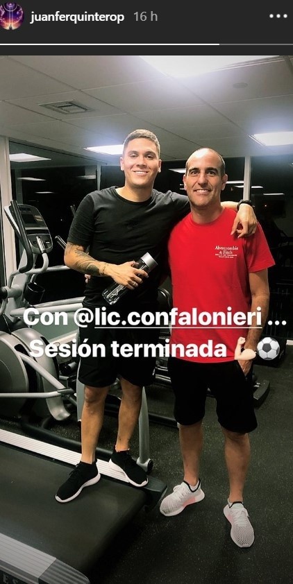 Juan Fernando Quintero no descansa. El colombiano está de vacaciones pero no deja de lado su recuperación buscando volver pronto a las canchas.